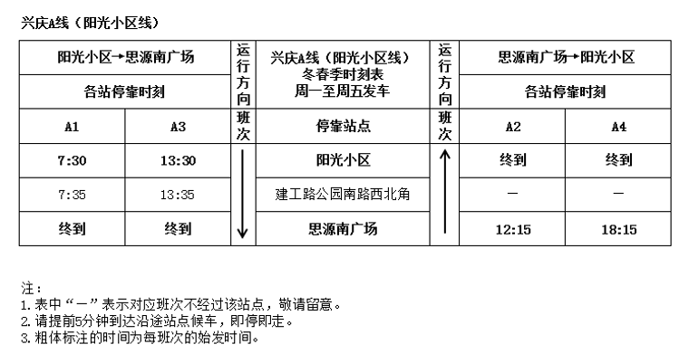 2.思源南广场始发:07:05 09:20 10:30 13:20