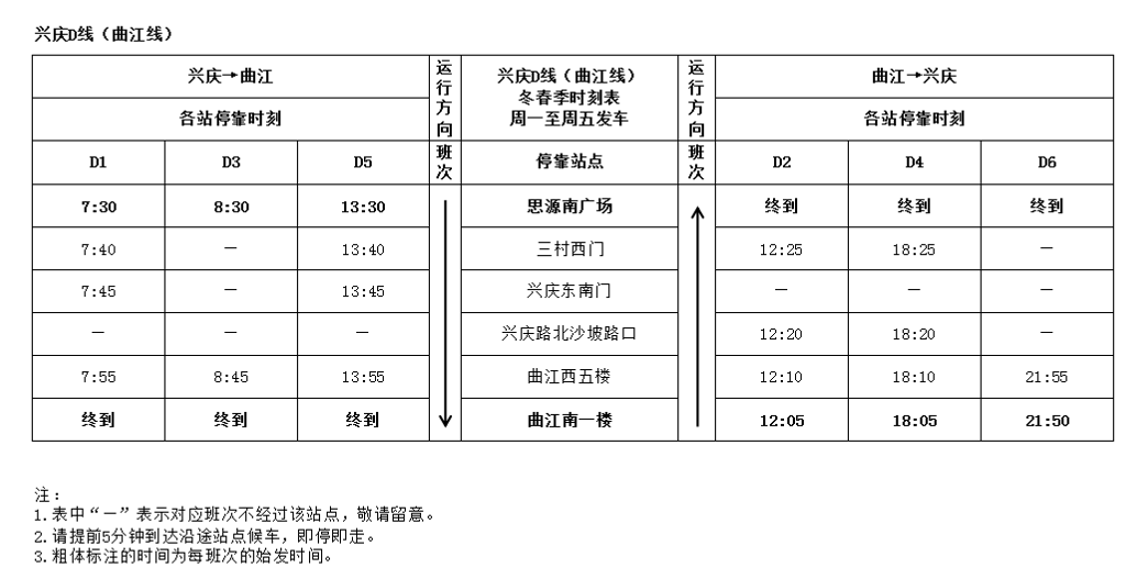 3.合并曲江校区教工、学生班车。将原每日上午08:00由思源南广场发往曲江校区的班车班次调整为08:30发车;