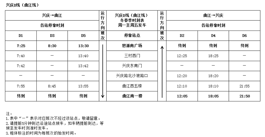 2.部分线路沿途站点时刻略有调整,具体详见线路时刻表。