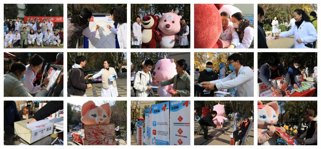 活动通过悬挂主题横幅、摆放防艾宣传易拉宝展版、发放宣传资料、现场宣教等方式展开。在各校区宣传点,医务人员及志愿者向师生们发放防艾科普宣传册,现场为学生讲解防艾基本常识,解答同学们的疑问。现场还有可爱的“抱抱团”和围观同学热情拥抱,志愿者穿上玩偶服扮演艾滋病感染者,为来往同学提供“艾”的抱抱,让同学们明白对艾滋病患者多一点关爱,少一点歧视。为激发参与热情,现场还有青春红丝带志愿团、学生心理学协会、红十字协会、南洋青年志愿者协会、唐仲英爱心社等学生社团同步开展宣传活动,活动设投壶等游戏与同学们轻松互动,并发放防艾宣传资料及小礼物,在文创品发送中传递“防艾知识”,引导学生正确认识艾滋病,消除对艾滋病的恐惧。