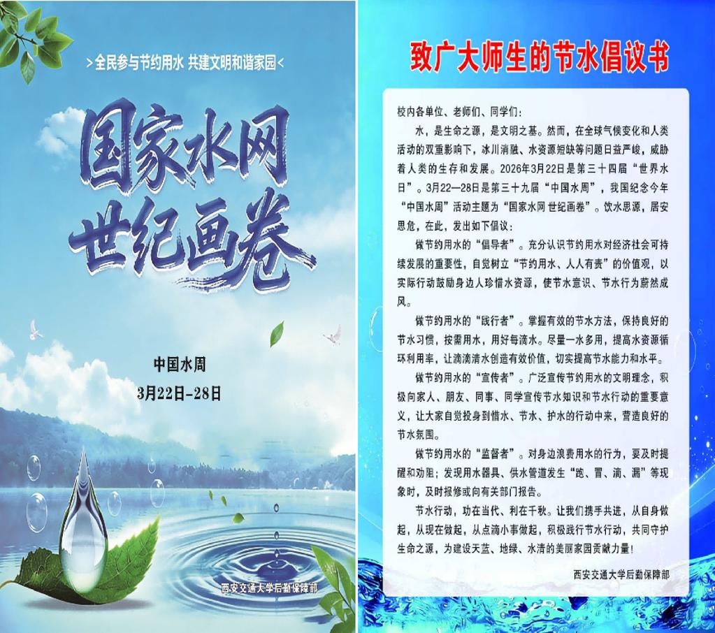 按照水利部工作部署,要求重点宣传国家在水网建设领域的具体举措等,凝聚社会共识,让社会各方面了解水网建设进展和成效,推动形成全社会支持国家水网建设的良好氛围。为积极发挥高校的模范带头作用,3月22日—28日学校分别在创新港、兴庆、雁塔、曲江四校区举办2026年“世界水日”、“中国水周”宣传活动,并取得圆满成功。
