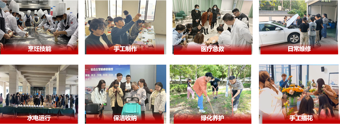 在课程设置上,学校采用分层分类全覆盖模式,针对本硕博不同层次制定差异化培养计划与目标。基础模块涵盖理论与实践两大板块:理论部分包含马克思主义劳动观、劳动法规、劳动安全等内容;实践环节则涉及宿舍卫生、实验室安全、爱国卫生集体劳动等。实践特色模块开设烹饪、急救、维修等技能类课程,以及校园绿化养护、日常保洁等服务类课程,学生完成规定教学目标、任务及课后作业后可获得相应学时。此外,学校还设置拓展模块,结合“星航计划”“首雁计划”,将志愿服务、社会实践、创业实训等纳入劳动教育体系,进一步拓宽育人维度。